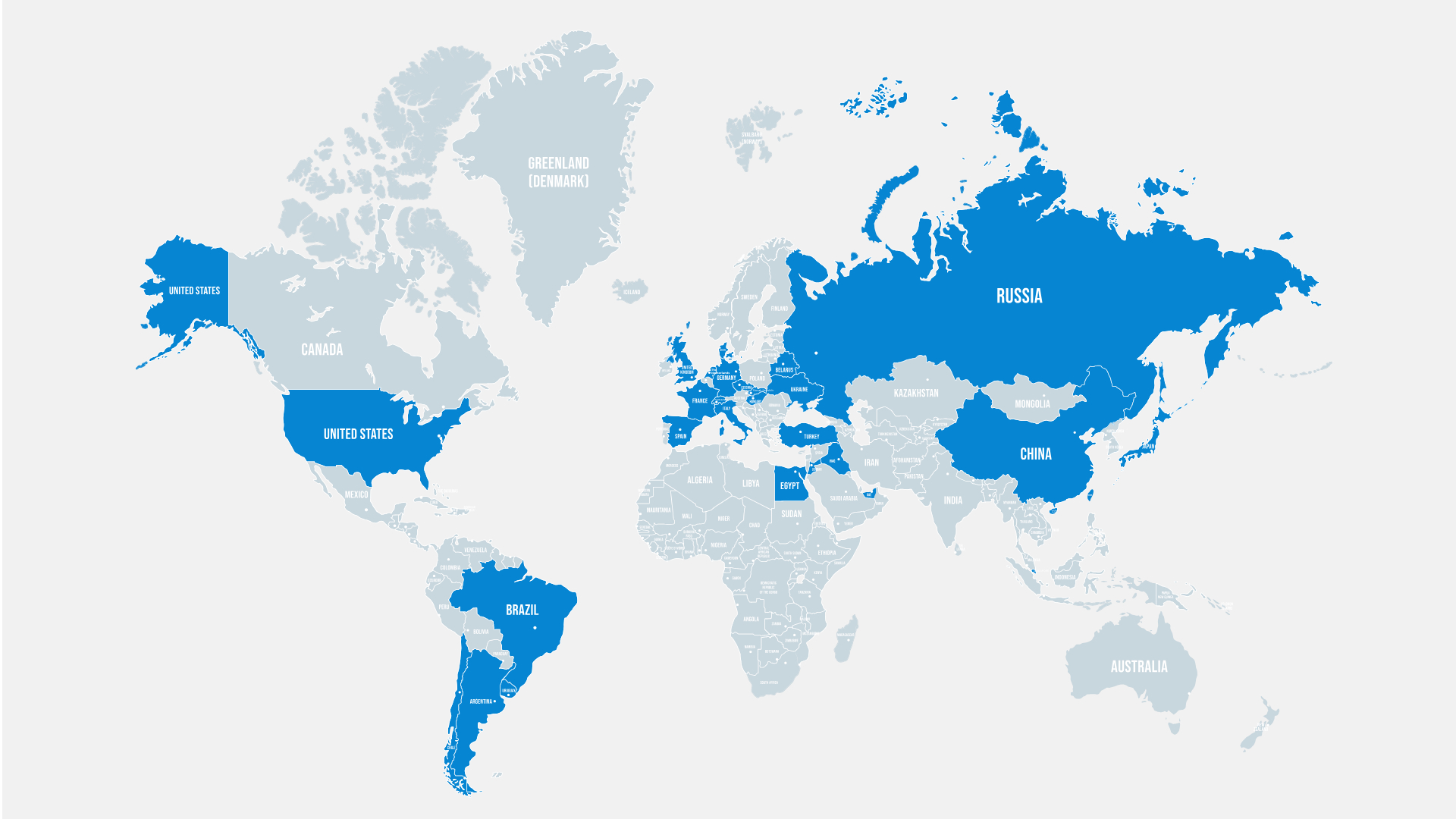 Asia Russia, Ukraine, China, Japan, Singapore, Hong Kong,